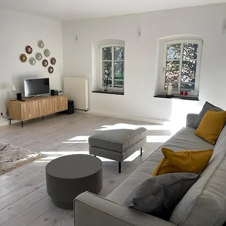 Con una zona de estar, el Haus Mit Tuermchen también ofrece vistas al jardín. Las habitaciones están equipadas con suelos de parquet. Este establecimiento incluye 1 dormitorio. Este apartamento dispone de una bañera para garantizar tu comodidad. Además, el baño está equipado con secador de pelo.